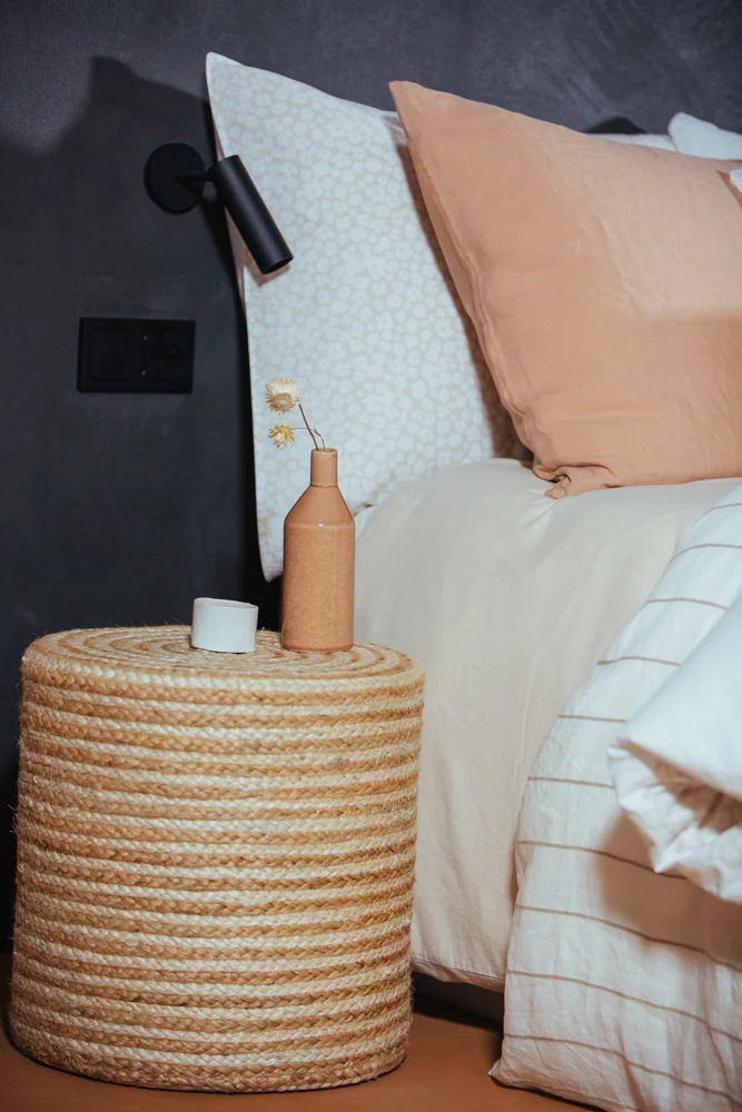 Pure 55 natural dekbedovertrek heeft een ingeven streeppatroon. De achterkant van het dekbedovertrek is effen wit. De kussens hebben aan de ene kant strepen en aan de andere kant is het effen wit. Pure 55 natural dekbedovertrek van Vandyck heeft een rustikale franse look. De voorzijde is gemaakt van 55% linnen en 45% katoen, de achterzijde is 100% katoen percale geweven 200 thread count.